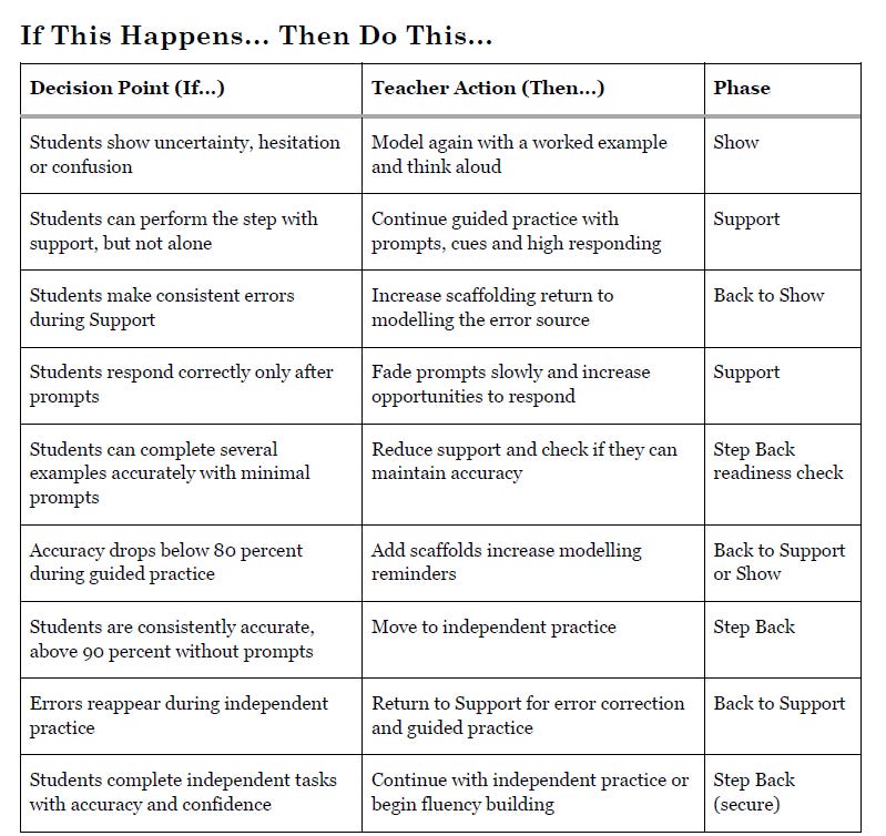 The real work of explicit instruction lives in the moments where teachers interpret evidence and choose what happens next.